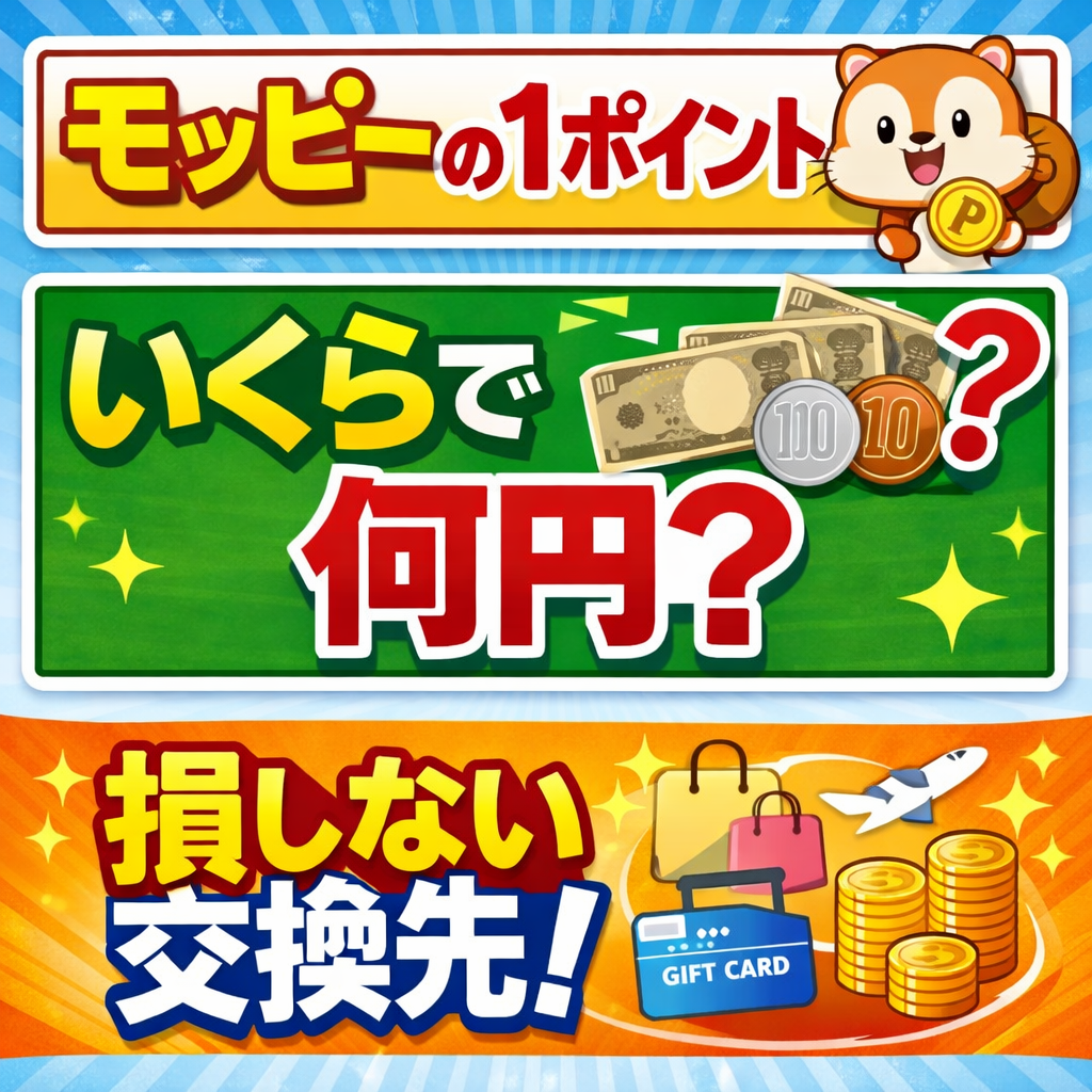 モッピーの1ポイントいくらで何円?損しない交換先! 公開日:2026年2月26日 未分類 「キャリアの泉」編集部です。コツコツ蔵之助と申します。ポイ活を楽しんでいますか?せっかく貯めたポイント、いざ使おうと思った時にモッピーの1ポイントがいくらになるのか、現金やPayPayへの交換レートが気になって手が止まっ […] 続きを読む